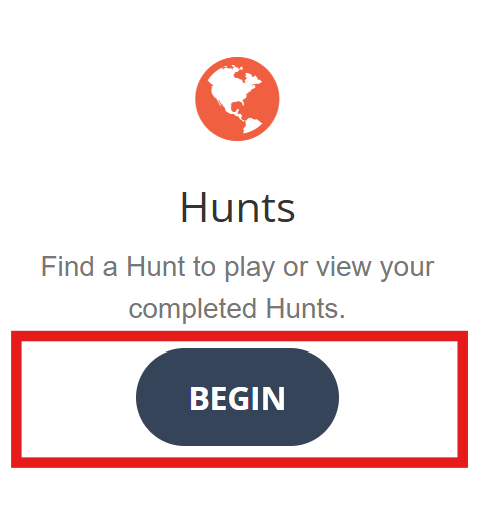 Click the Begin button on the home page under the Hunts heading to access the public hunts page.
