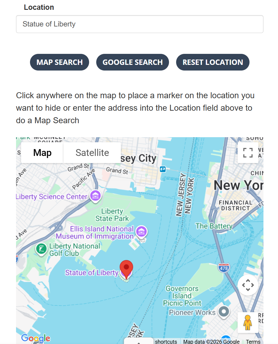 Hidden locations are the treasure players are looking for. Locations can be anywhere on the map.