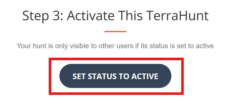 While you are creating a hunt, it is in a draft status and does not appear onthe public hunts page. To publish it, you need to activate it. Click the button to Set Status to Active.